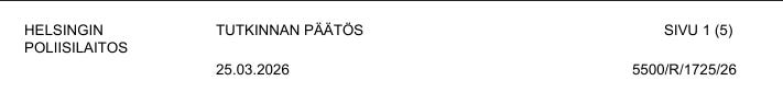Alkuperäistä rikosilmoituksen tekijää ei asiakirjoissa mainita – vain sukunimi.