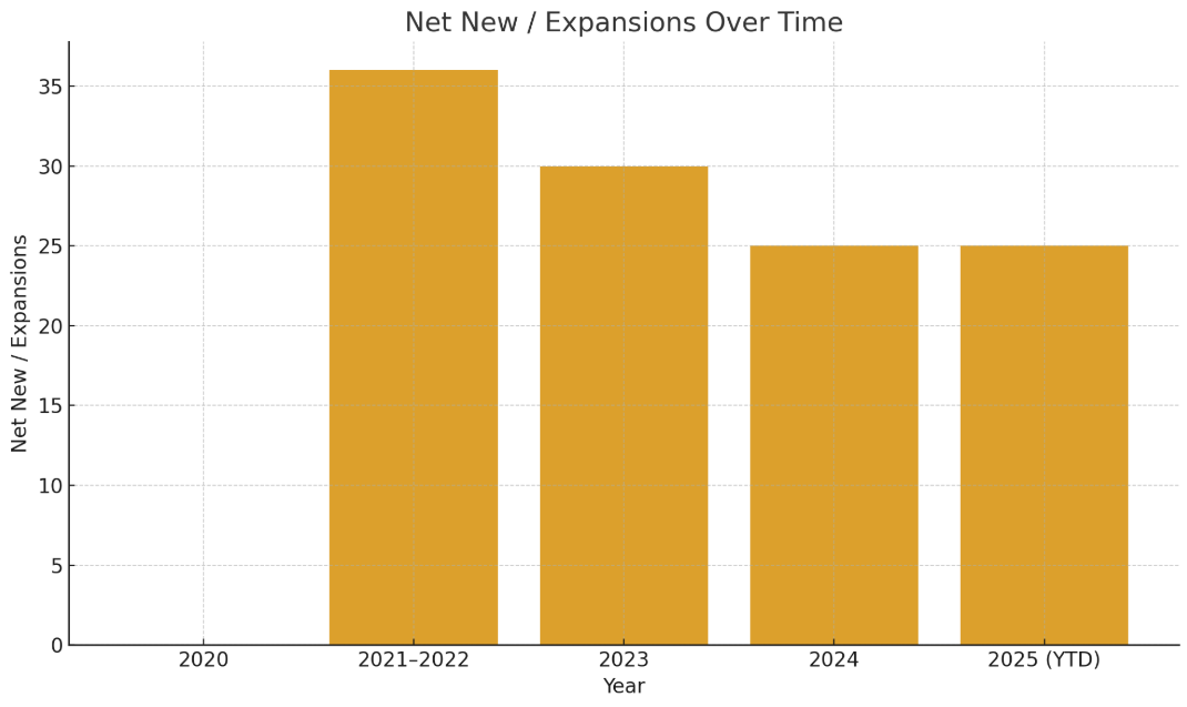 Vuonna 2025 hakemistot kuten Rentech Digital ja osavaltion lisenssitiedot arvioivat 330–350, Houston (yli 100) ja DFW (noin 70) keskipisteinä.3
