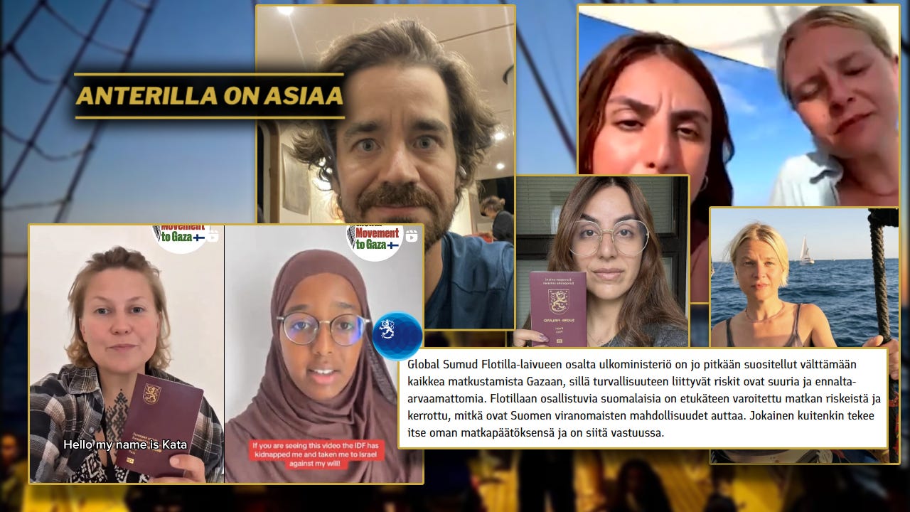 Ulkoministeriö on saanut suuren määrän kansalaisten yhteydenottoja liittyen Gazan tilanteeseen sekä Hamasin 'Global Sumud Flotilla' -propagandalaivueeseen. Apua ei ole nähtävästi tarjottu tarpeeksi.