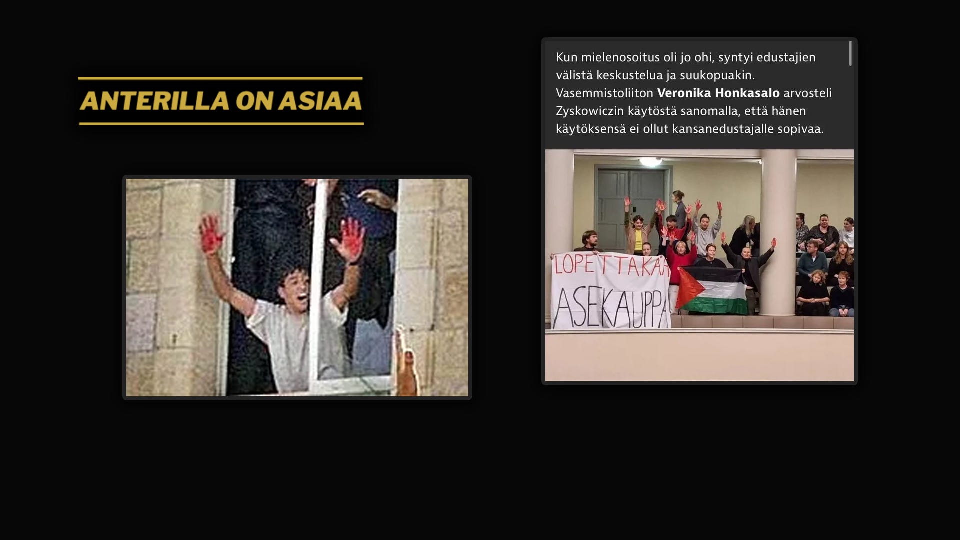 Veristä juutalaisten lynkkaamista islamistien käsissä symbolisoiva käsimerkki heilui Eduskuntatalon salissa vasemmistolaisten vallattua sen mielenosoituksella.